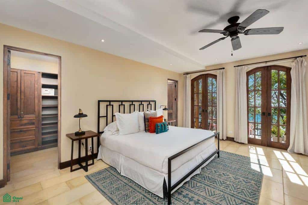 Upstairs, every bedroom boasts a western-facing ocean view to capture spectacular sunsets. The primary suite includes a private balcony—perfect for morning coffee with a view. Two centrally located bedrooms share a luxurious full bath, while a second master suite with lock-out capability offers added privacy or flexible use as a rental unit or guest quarters.